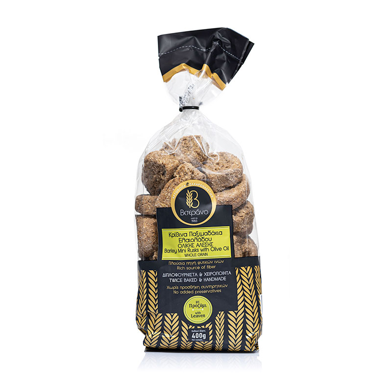 Μοναδικά σε ποιότητα και γεύση παξιμάδια Βετεράνο, που η παρασκευή τους ακολουθεί πιστά την κρητική παράδοση και γεύση. Φτιαγμένα πάντα με φυσικά συστατικά. Χωρίς συντηρητικά, χωρίς βελτιωτικά, χωρίς χημικά πρόσθετα.